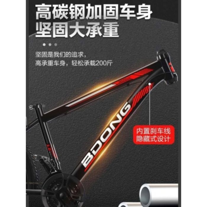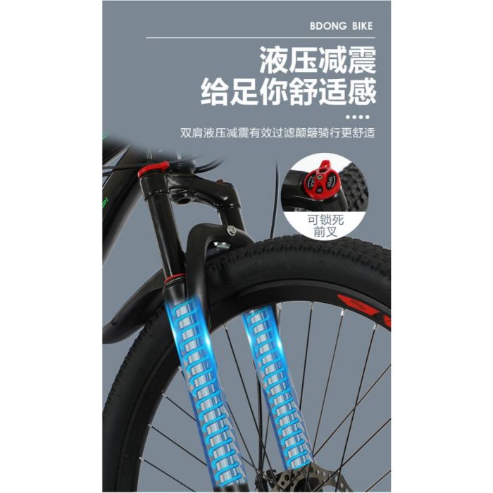 This Mountain bike with front suspension and 21 speeds for adults, made with a strong frame, comfortable design for rough terrain, smooth gear system for quick control, disc brakes for stability and safety, suitable for daily riding and outdoor adventures
