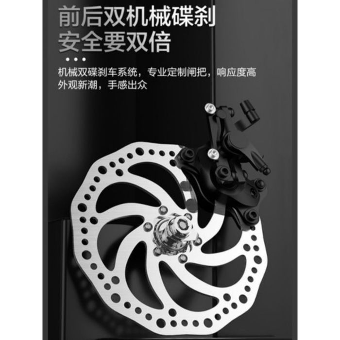- Front and rear disc brakes for enhanced stability