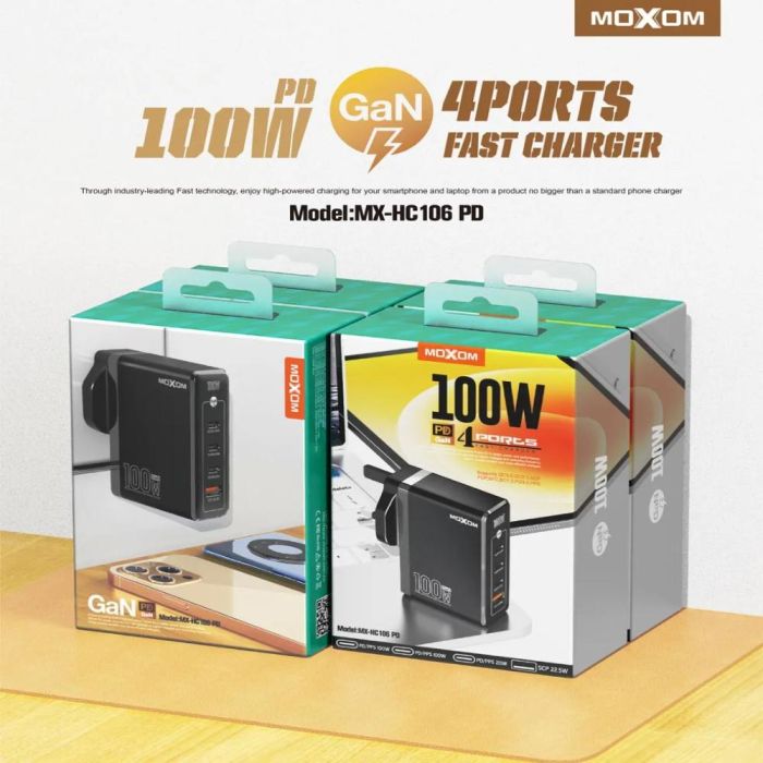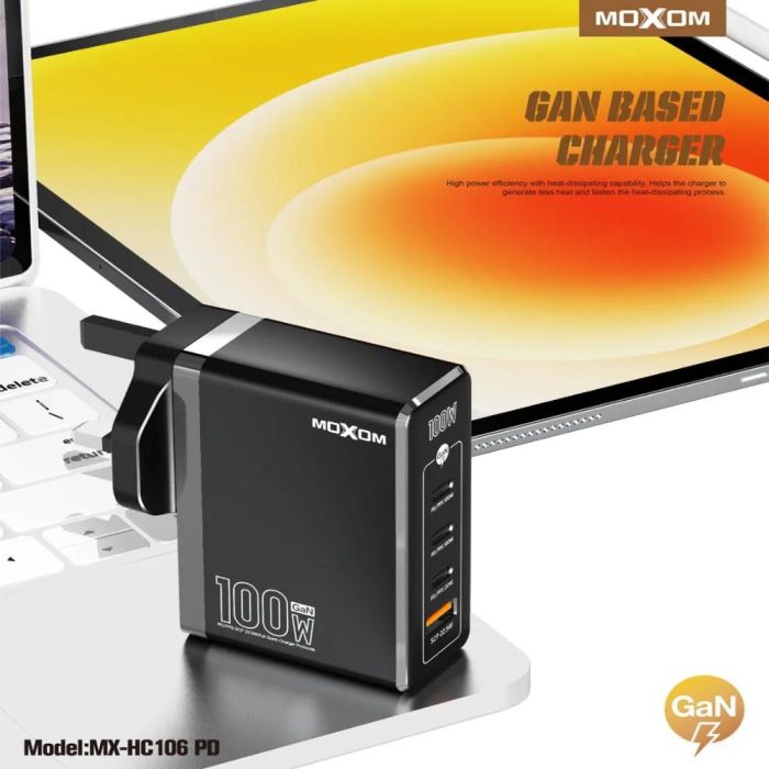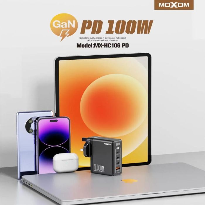 - Moxom 100W PD GaN Fast Charger 4 Ports