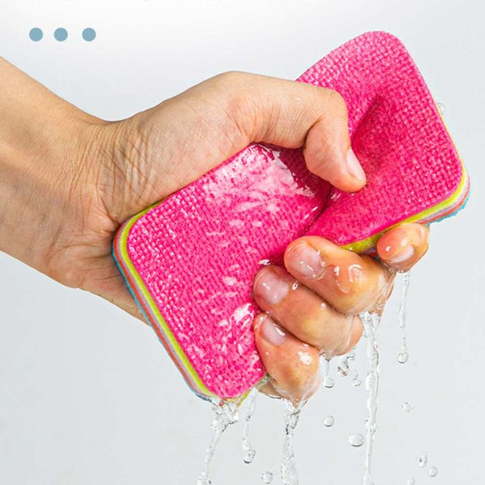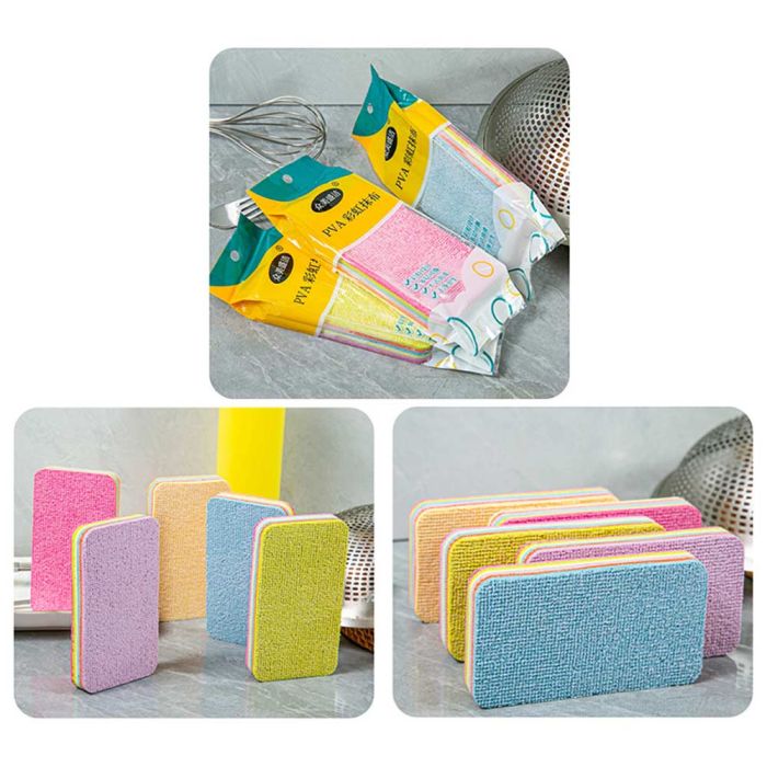 This multi-color sponge cleaning pad set is perfect for scrubbing dishes, countertops, and more. Durable and reusable, each sponge offers excellent cleaning power without scratching surfaces. Ideal for everyday household use, they help maintain cleanliness in the kitchen while adding a colorful, cheerful touch to your chores.