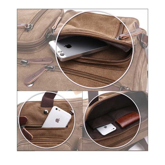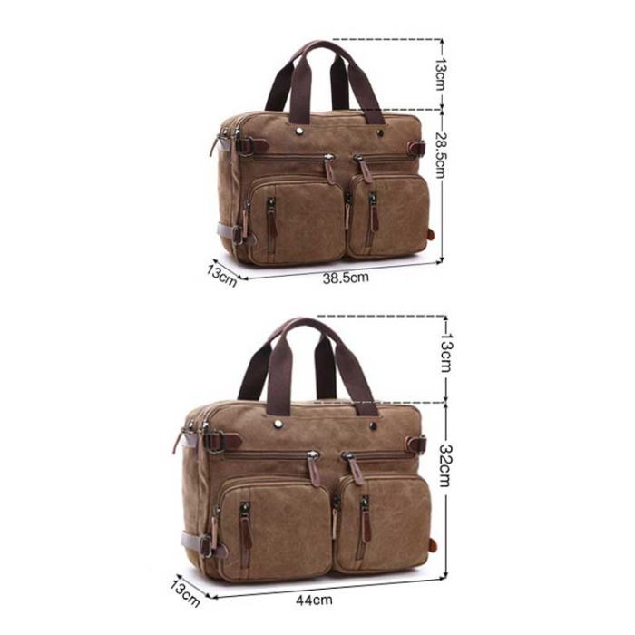 This multi-function canvas bag offers both style and utility, designed to be worn as a backpack or shoulder bag. With multiple compartments, it helps you organize your daily essentials or work gear with ease. Available in two sizes to fit your needs, it's built from durable canvas that stands up to heavy use and travel.