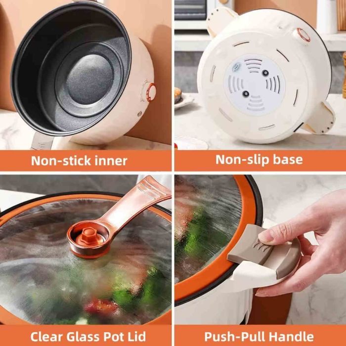 Cook a variety of meals with a versatile electric pressure cooker designed for everyday use. With a 4-liter capacity ideal for 3–4 people, it can steam, boil, fry, stew, and braise with ease. The stainless steel non-stick inner pot provides even heating, while the durable plastic body keeps it lightweight and easy to handle. Compact yet powerful with 1000 watts of power, it delivers fast and reliable cooking results every time.