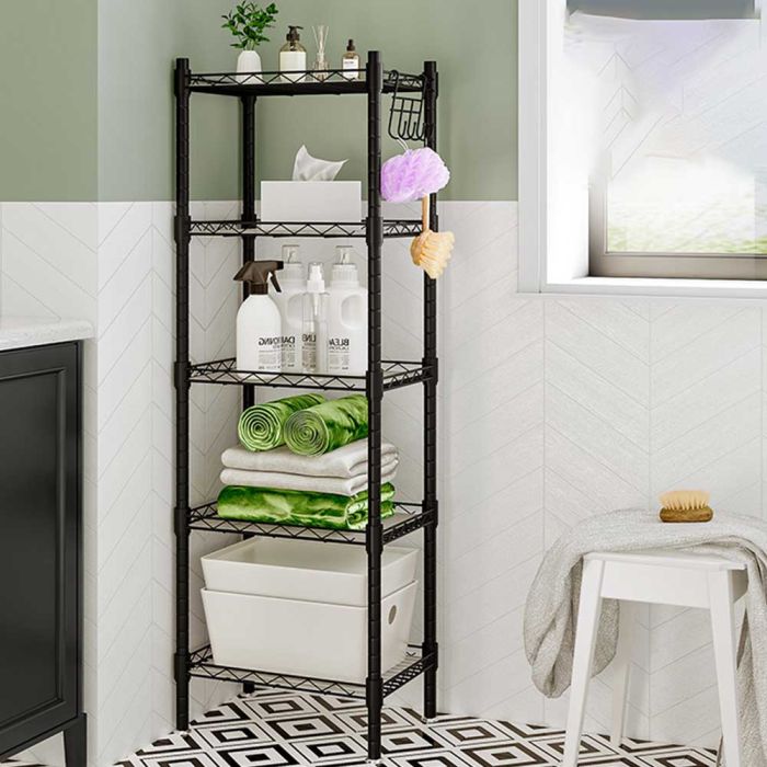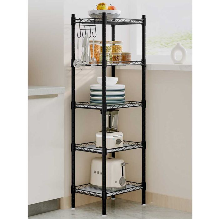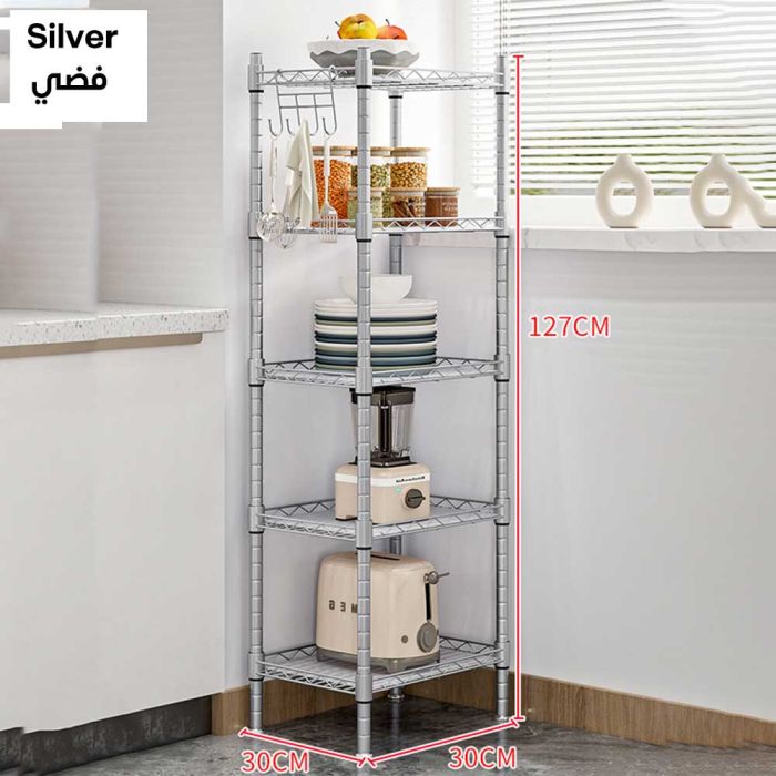 This Multi Function Metal Organizer Rack 5 Layers is made of durable steel, featuring a wire design for clear organization and easy access, with a stable structure for daily use, suitable for kitchens and also ideal for living rooms, bathrooms, or storage areas
