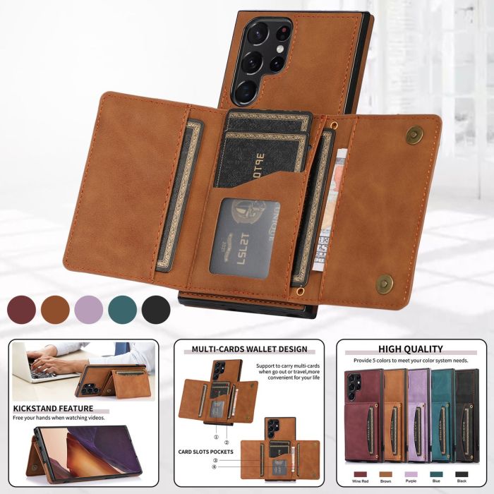 - Multi-functional Wallet-Style Protective Cover for Samsung - S24 - brown