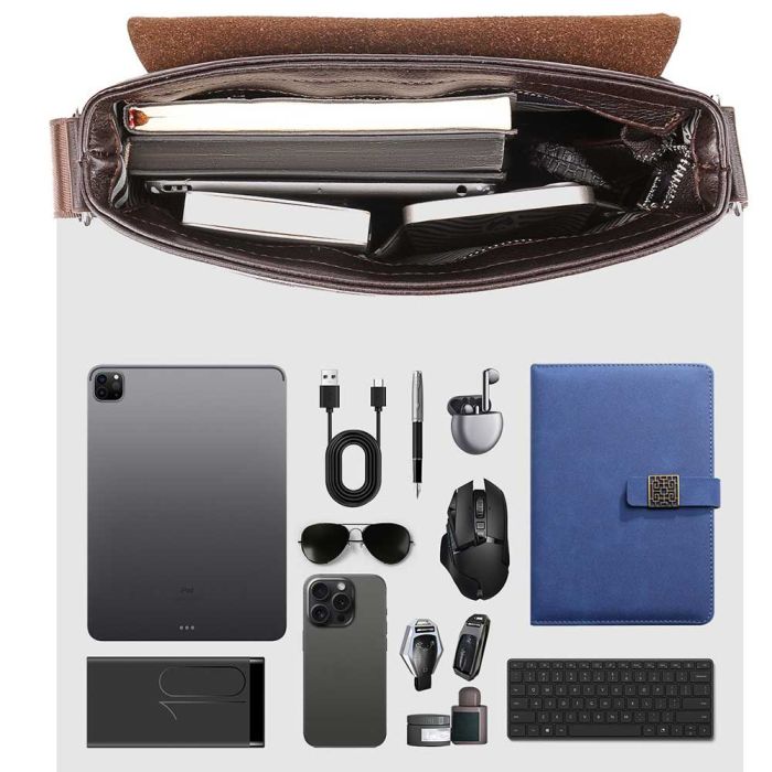 This Multi-layer Leather Crossbody Bag Provides Organized Space for Files and Tools, Durable Material Maintains Its Quality, Modern Design Makes It Suitable for Daily and Business Use