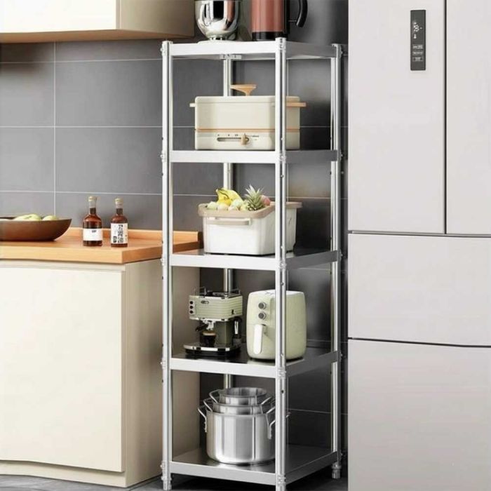 This multi layer stainless steel kitchen organizer is made of strong stainless steel to give you elegant organization and smart space use, helping you arrange cookware and appliances easily, stable and moisture resistant, suitable for kitchen and other areas for daily convenience