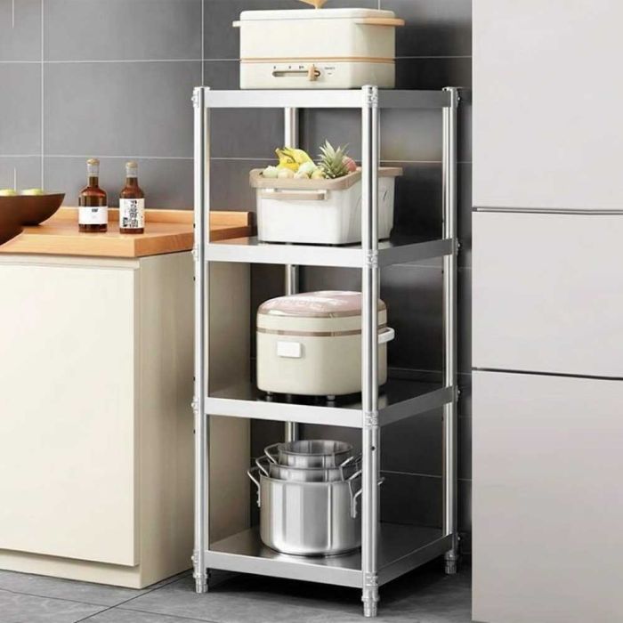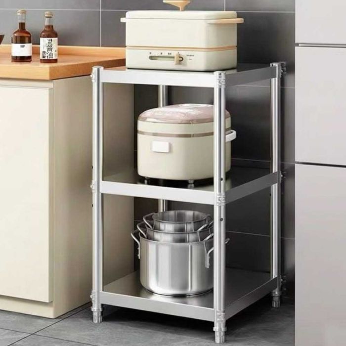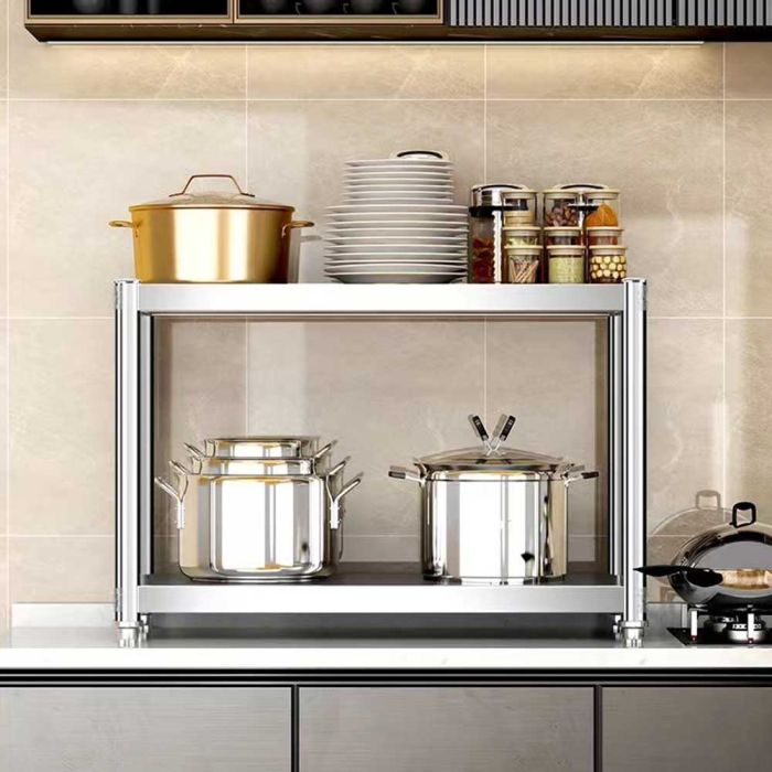 This multi layer stainless steel kitchen organizer is made of strong stainless steel to give you elegant organization and smart space use, helping you arrange cookware and appliances easily, stable and moisture resistant, suitable for kitchen and other areas for daily convenience