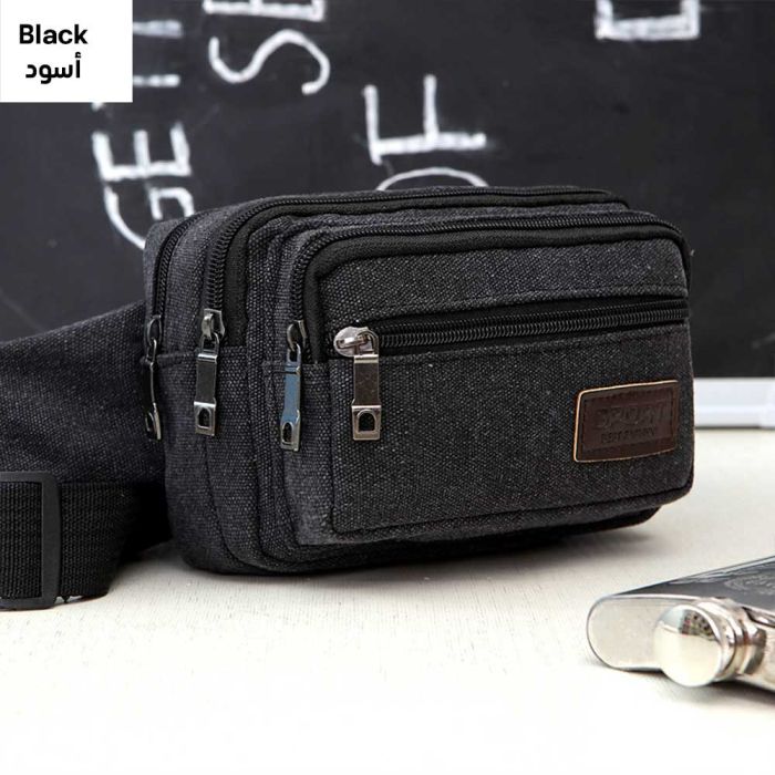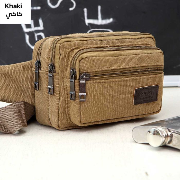 - Multi-Pocket Canvas Waist Bag 19×11×13 cm
