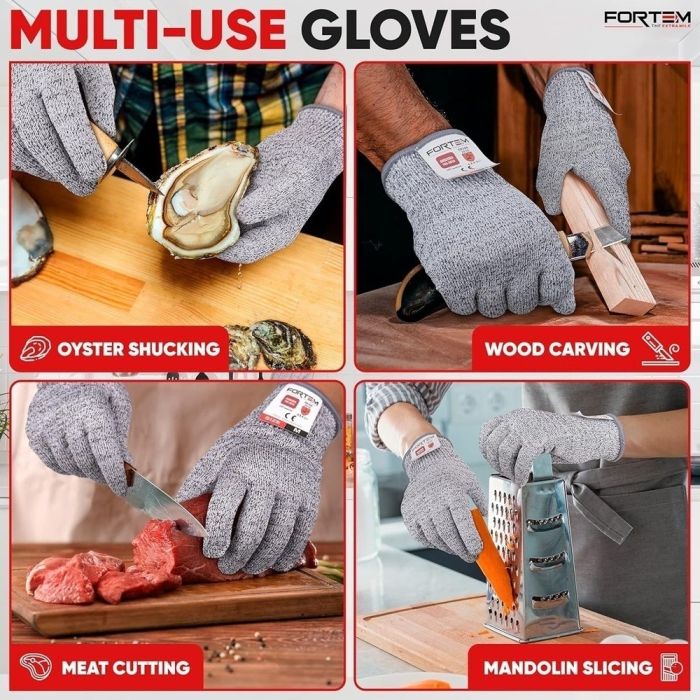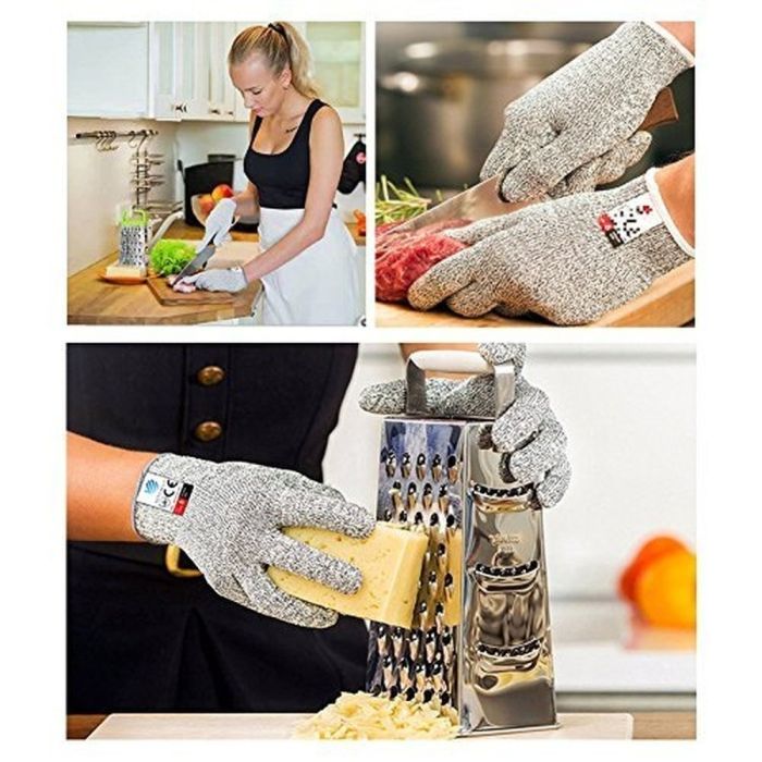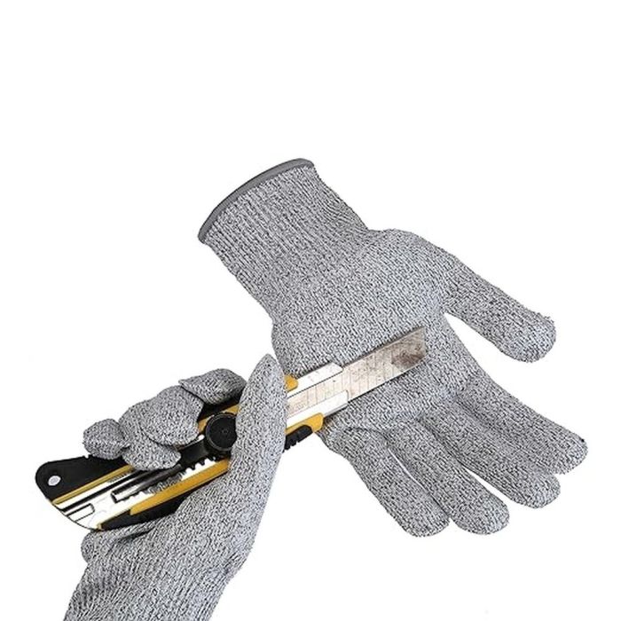 Comfortable and safe gloves for various tasks, made from Grade 5 cut-resistant fibers, providing robust protection with a flexible grip. Washable and fits both hands together, ideal for the kitchen, woodworking, or handling sharp tools.