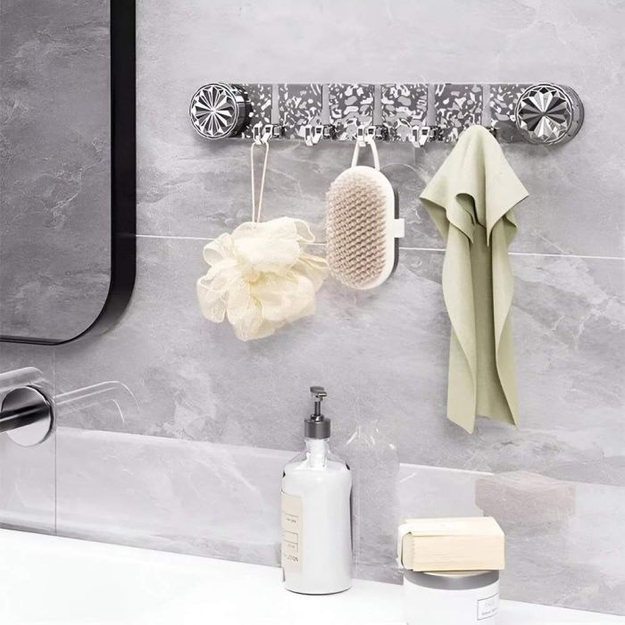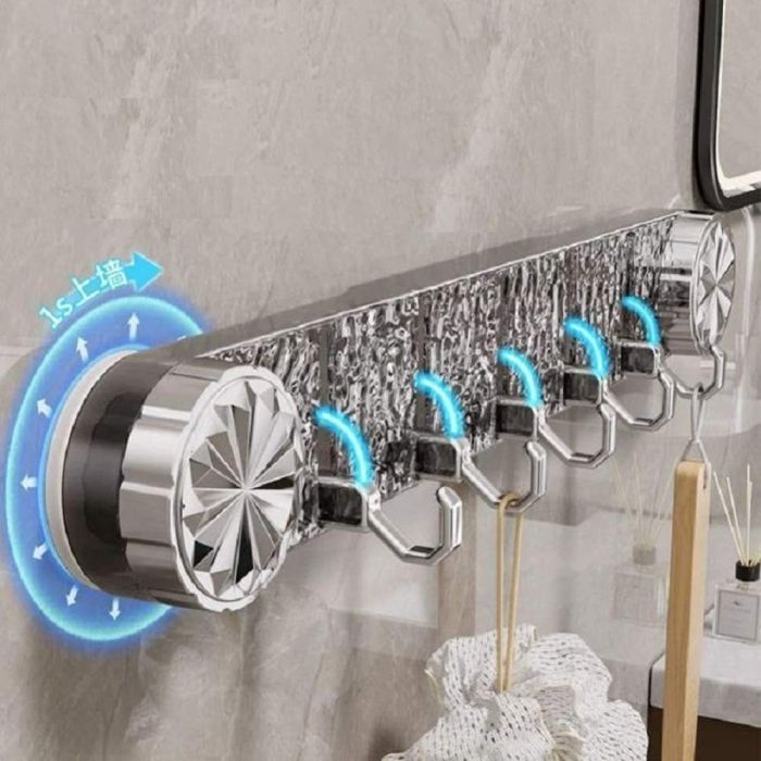 Add a touch of organization to your home with this versatile wall-mounted hanger, designed for quick and secure installation via strong suction cups without the need for nails or drilling. It provides an ideal way to hang towels, kitchen utensils, accessories, or cleaning tools, keeping your items organized and easily accessible. Thanks to its modern design and durable materials, it is water and moisture resistant and long-lasting. It can also be easily attached to smooth surfaces and removed without leaving any traces, making it a practical organization solution for any room in the house.