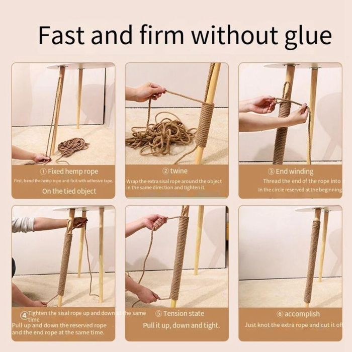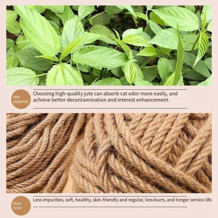 This Natural Jute Rope for Pets, Made from Scratch-resistant Coarse Jute Fibers. Available in Multiple Lengths for Easy Installation, It Stimulates the Natural Scratching Instinct