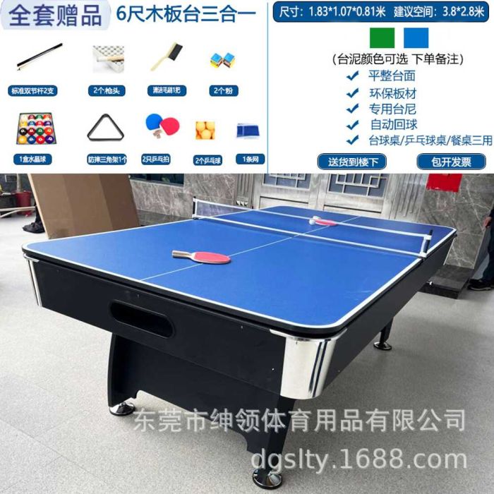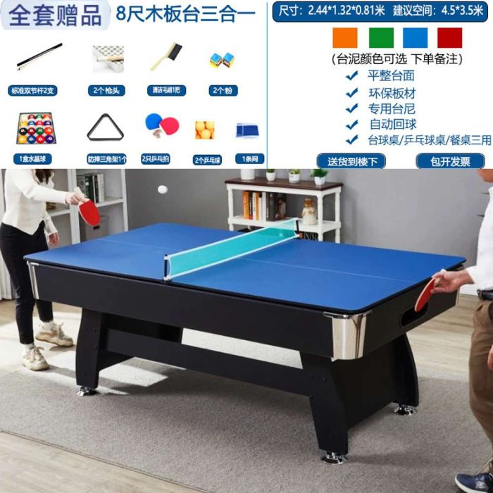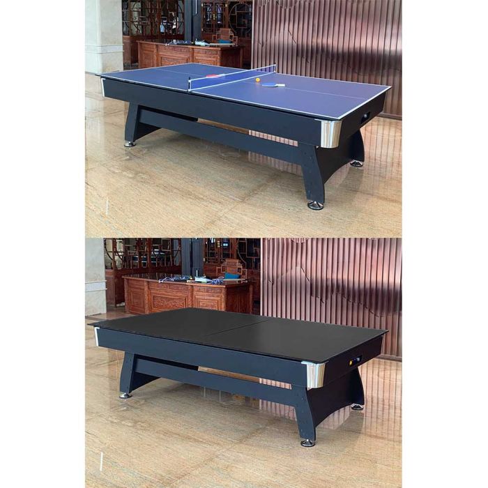 This multi-use billiard table 3 in 1 is made from a durable frame for a comfortable playing experience, easily converting into a tennis table and dining table, making it ideal for family gatherings, combining elegance and strength for enjoyable entertainment