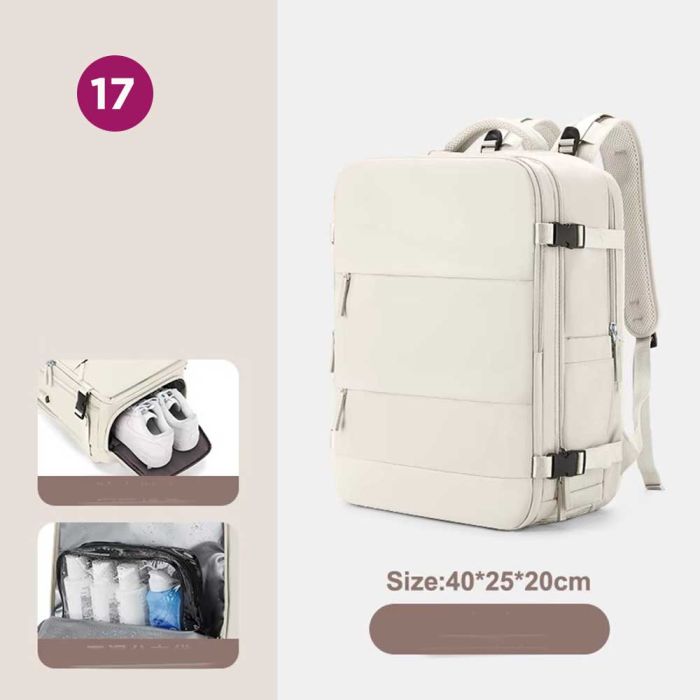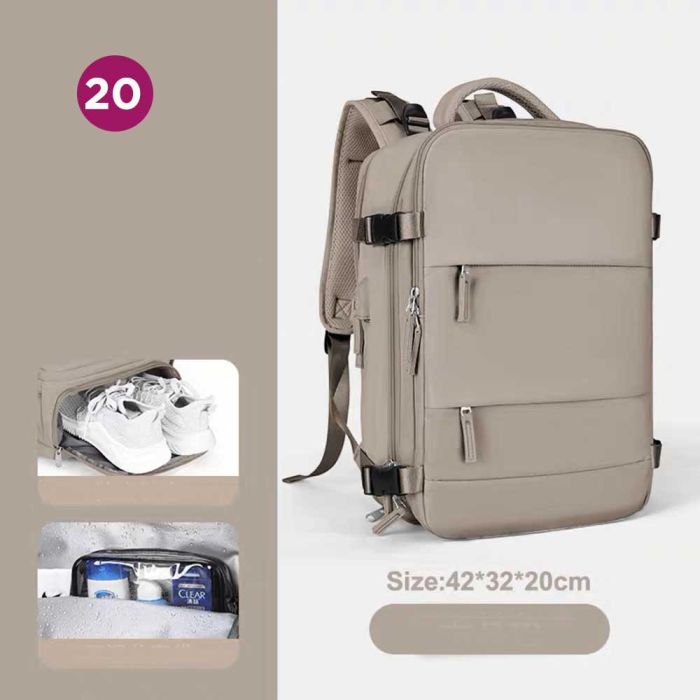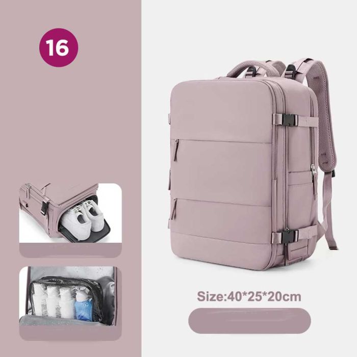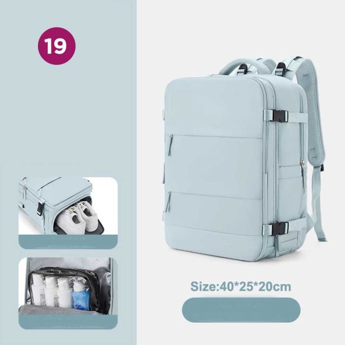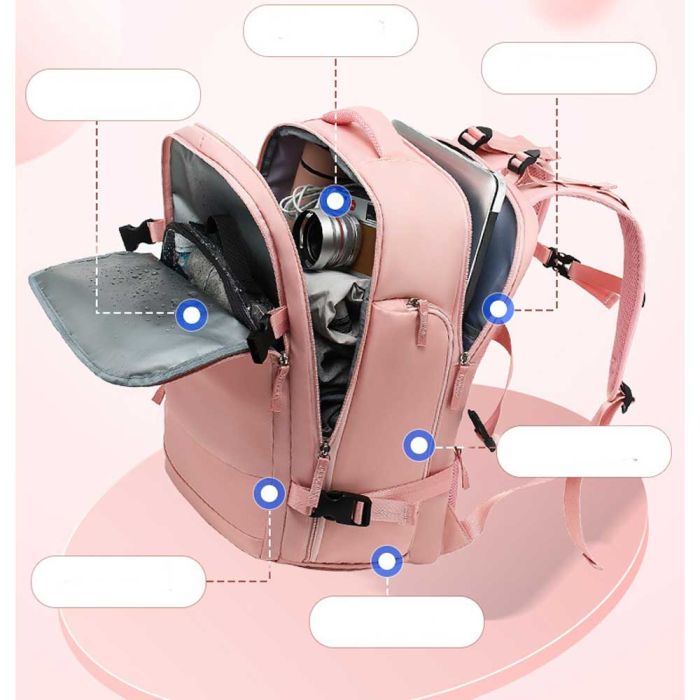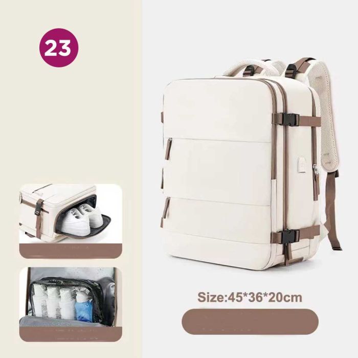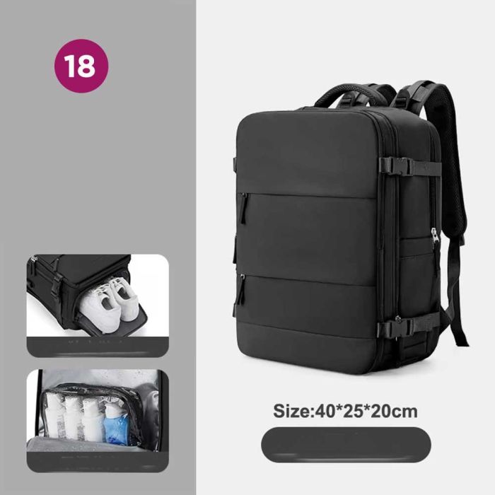 This practical backpack offers a spacious capacity ranging from 36 to 55 liters, perfect for daily organization or long trips. Its stylish design suits all uses, featuring a dedicated side pocket to keep shoes clean and dry. Multiple storage compartments include an insulated pocket for food or water bottles, plus flexible side pockets. Made of high-quality, water-resistant materials with a padded back strap, it guarantees comfortable carrying throughout the day. A reliable and versatile travel companion.