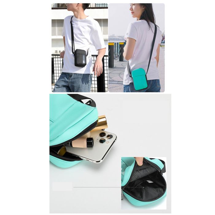 This travel phone bag with a large capacity is made from lightweight, water-resistant materials, offering a modern and unique design that suits all tastes. It allows for easy mobility by transforming from a shoulder bag to a crossbody bag, ensuring optimal protection for your phone and personal items with its multiple pockets and spacious compartments, making it the perfect choice for daily trips and sports activities.