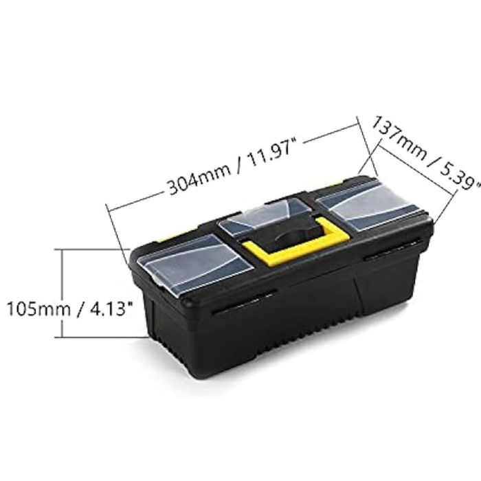 Features a compact design with a non-slip handle and a removable inner compartment for easy storage of wrenches, sockets, and screwdrivers. The transparent top covers provide ample space for storing small screws and nuts, keeping them easily accessible and preventing loss. Made of high-quality, impact- and shatter-resistant ABS plastic, ensuring durability and long-lasting use.