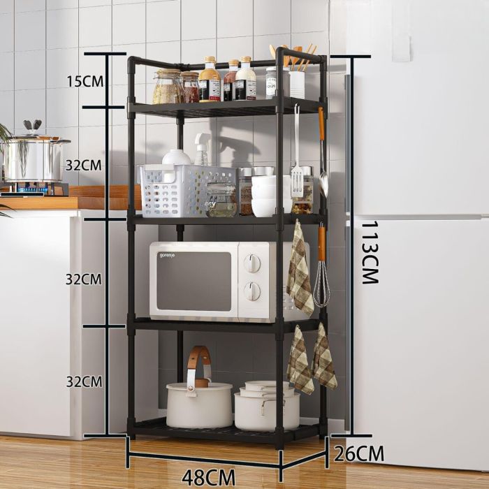 Make your kitchen more organized with this practical and ideal organizer. It features 4 functional layers for storing pots, spices, or appliances like a microwave, with a smart design that efficiently utilizes vertical spaces. Made from durable materials, it ensures long-lasting use. Its easy assembly and modern design make it a perfect addition to enhance the arrangement of small or large kitchens in a stylish and organized manner