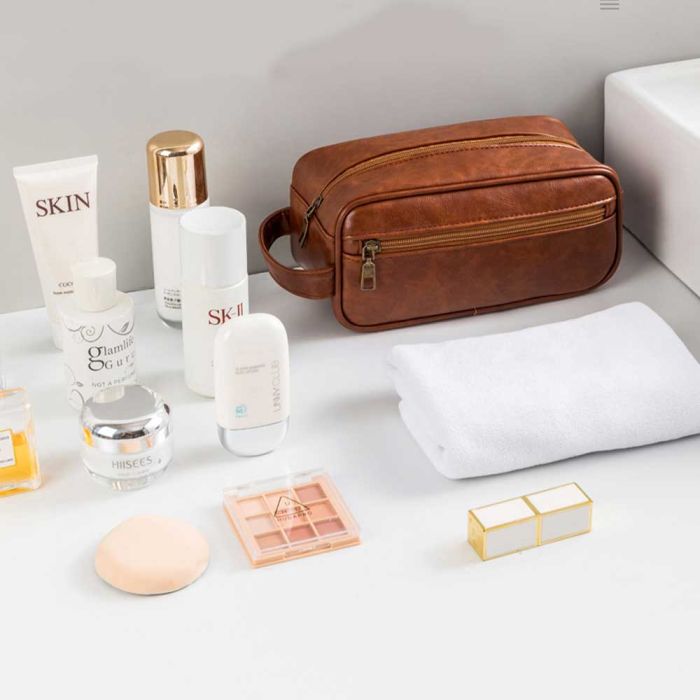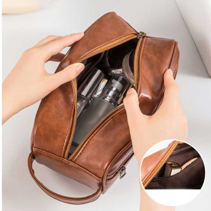 This multifunctional PU leather bag offers the perfect solution for organizing your toiletries and cosmetics with ease. Designed with a modern elegant style and a front zipper pocket for extra storage, its spacious interior keeps everything neatly arranged. Water-resistant and lightweight, it is an ideal choice for both travel and daily use.