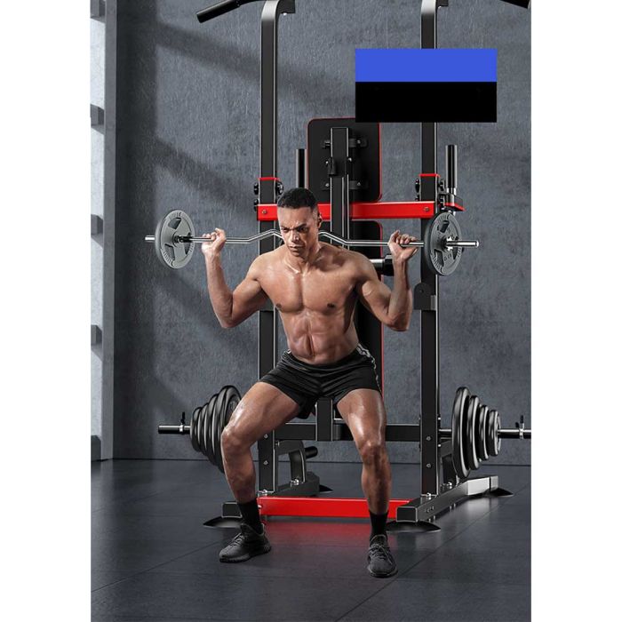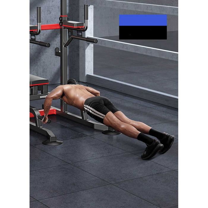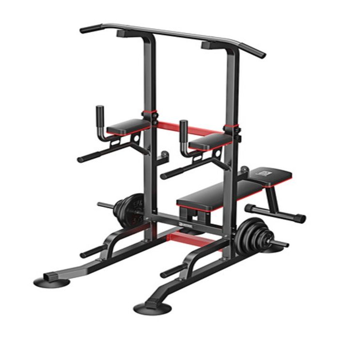 This multifunctional training station with a foldable bench is built for strength and versatility. Made of high-quality steel for exceptional stability and durability, it supports pull-ups, push-ups, squats, and arm and chest exercises, providing a complete home workout experience.