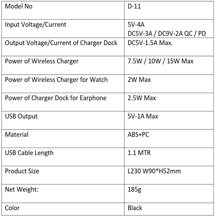 - Wireless Charging Power for Phone: 7.5W/10W/15W (Max)