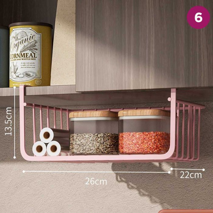 A versatile solution for smart kitchen organization. Made of durable, rust-resistant metal with a modern design, it can be hung on the bottom of cabinets to store and organize spices, utensils, napkins, and even small plants! Say goodbye to clutter and enjoy a tidy and elegant kitchen.Today’s Deal is Multipurpose Hanging Kitchen Storage Rack