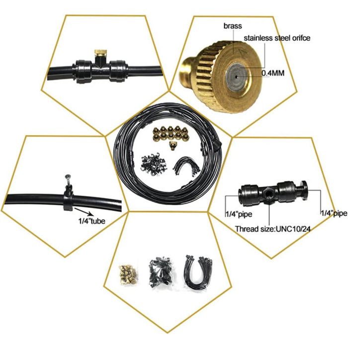 Beat the heat with the Multipurpose Outdoor Misting System (10m) . your go-to solution for a cool and refreshing outdoor experience. Whether it’s your patio, garden, greenhouse, or even a pet area, this easy-to-install misting kit brings instant relief from hot weather with a fine, cooling mist.