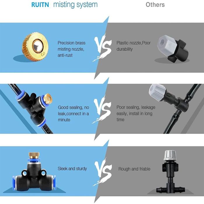 - Simple installation without digging or plumbing skills, simply insert the fittings and sprayers, you can begin watering your plants instantly