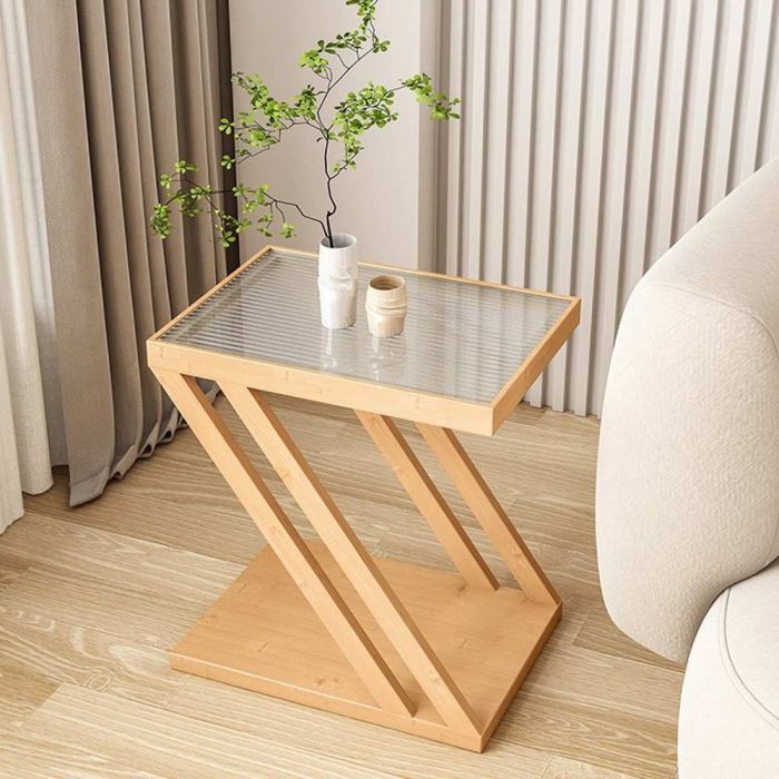 This side table with a tempered glass top and Nanmu frame is made from durable materials, adds a natural elegant touch, suits living rooms, and blends easily with modern decor for comfortable everyday use