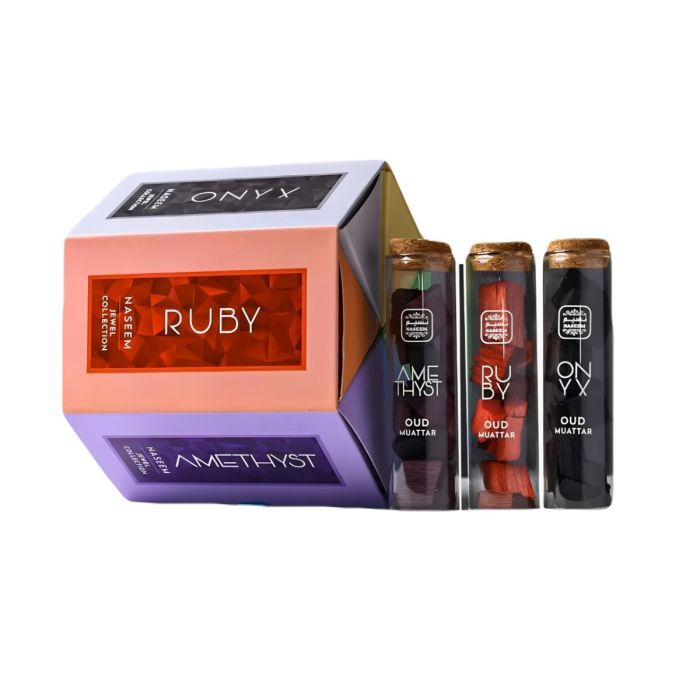 The Jewel Collection Set from Naseem Perfumes includes 6 different Mamoul Jewels, each offering a unique and luxurious fragrance experience. This set is perfect for those who appreciate high-quality Arabian scents and want to explore a variety of exquisite fragrances.
