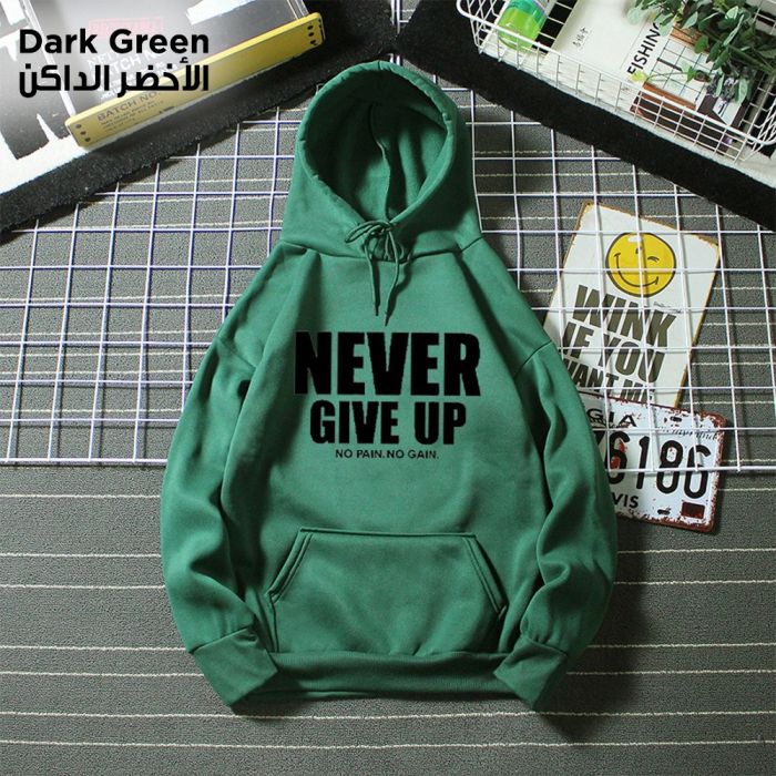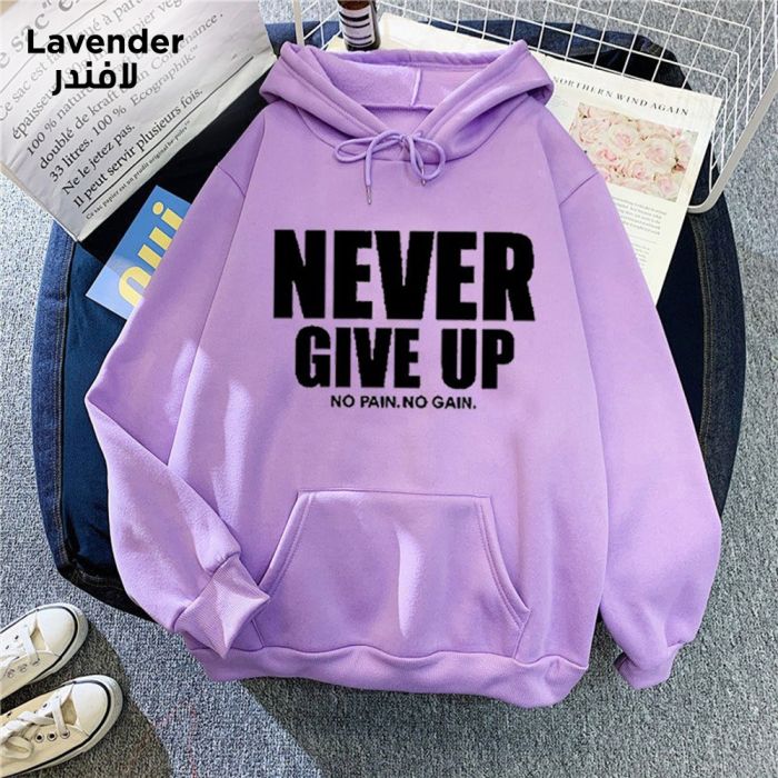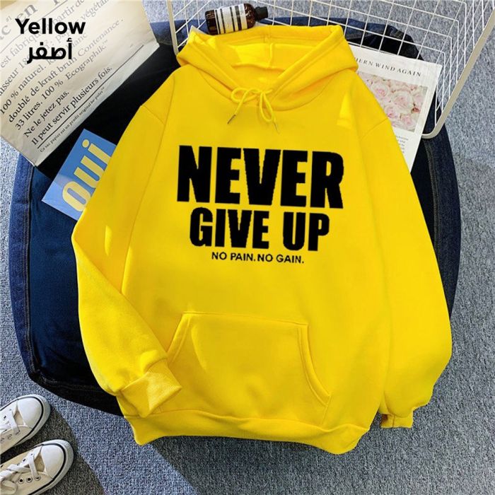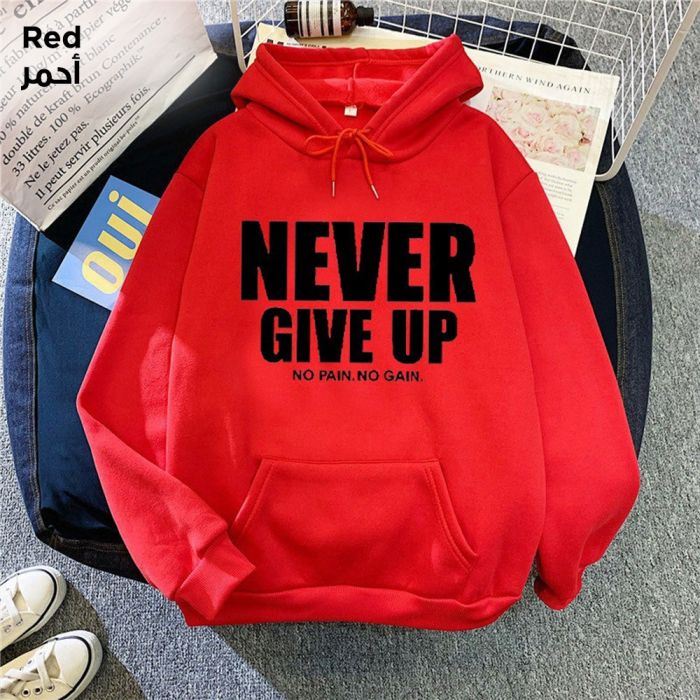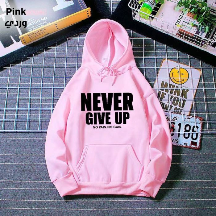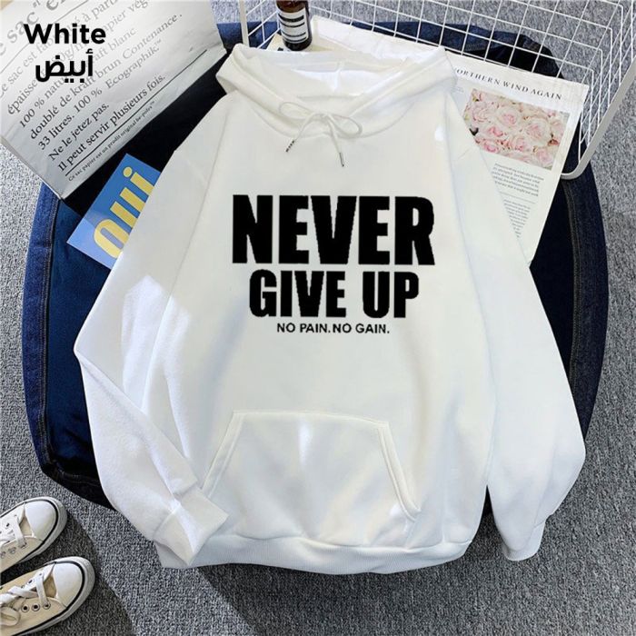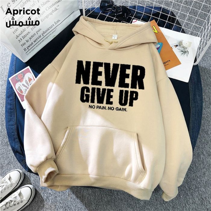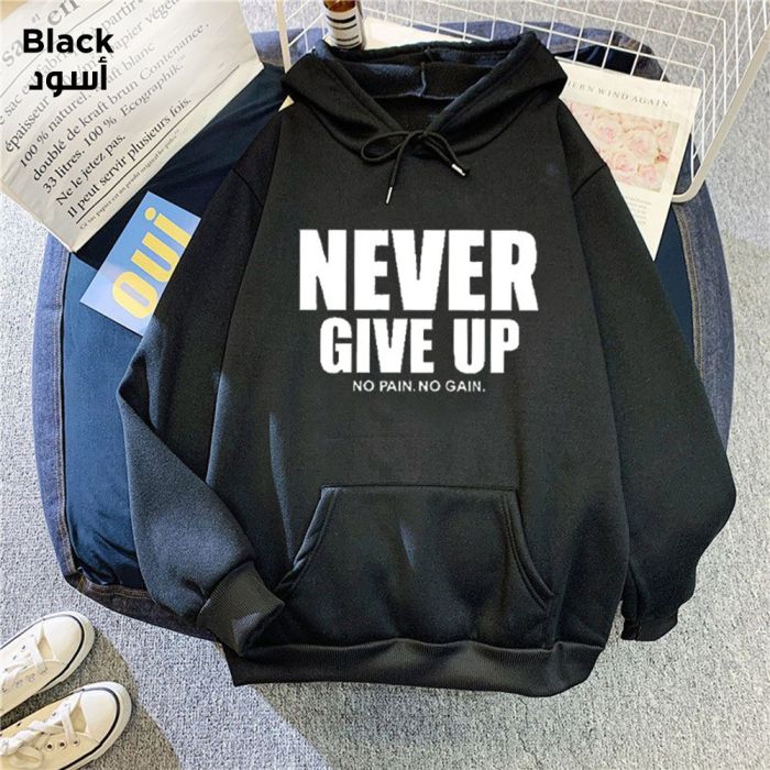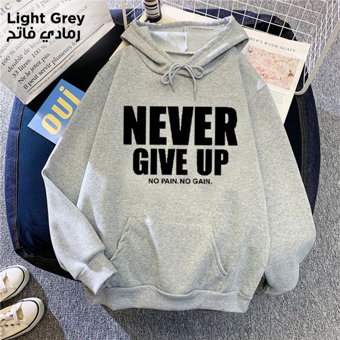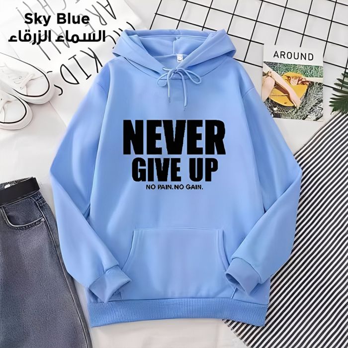 Enjoy warmth and comfort with this loose-fitting sweatshirt designed in a modern, casual style. It features a practical hood for extra protection from the cold, and a loose fit that allows for freedom of movement and adds a youthful touch to your look. Its soft fabric makes it ideal for everyday use, whether at home, on the go, or for light sporty looks. It can be easily paired with jeans, leggings, or cotton shorts for a comfortable and modern look.Today’s Deal is Never Give Up Loose Fit Hooded Sweatshirt For Women