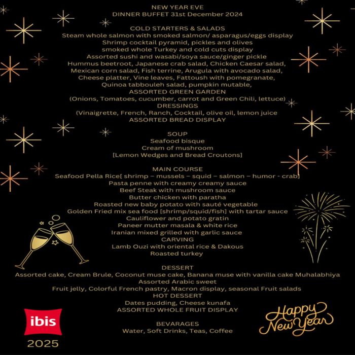 Spend the most enjoyable experience with your family or friends and head over to Ibis Hotel for New Year Dinner Buffet at Ibis Hotel - Salmiya