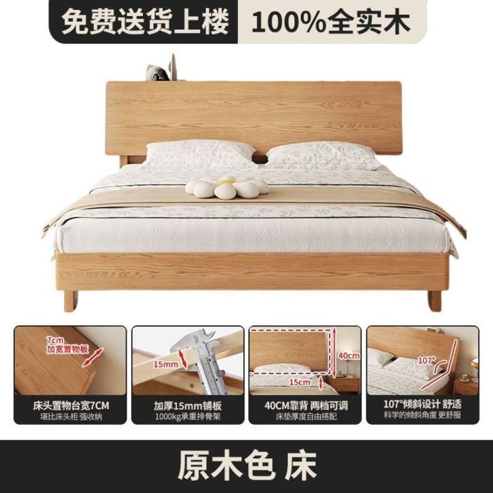 - Nordic Design Oak Wood Bed with USB Port
