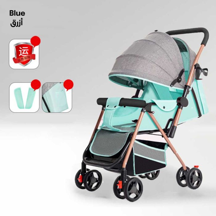 - One-Click Folding Light weight Sit and Recline Baby Stroller - Blue