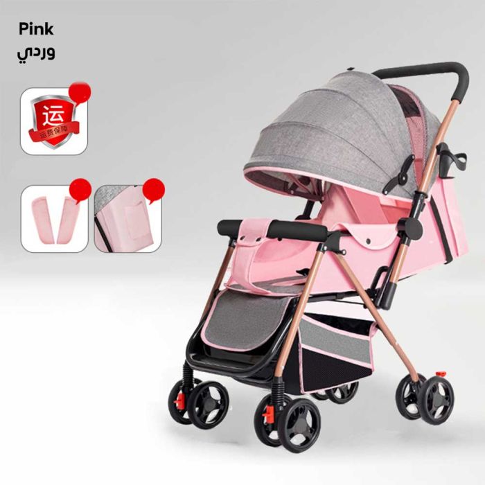 This stroller is designed to provide your child with comfort and safety thanks to its adjustable sitting and reclining positions suitable for different ages. It features a lightweight frame that is easy to carry and folds with a single press for storage in the car or while traveling. The four wheels provide excellent stability and smooth movement on various surfaces.Today's Deal is One-Click Folding Light weight Sit and Recline Baby Stroller