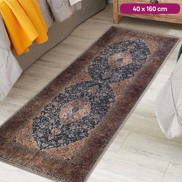 This retro pattern long thin anti-slip carpet is designed to bring both style and comfort to your home. Made from durable polyester with a soft surface, it absorbs water while protecting the floor. The non-slip dotted backing keeps it firmly in place, making it safe for corridors, kitchens, or bedrooms. Its retro printed design adds elegance, while its lightweight structure makes it easy to fold, clean, and maintain for everyday use.