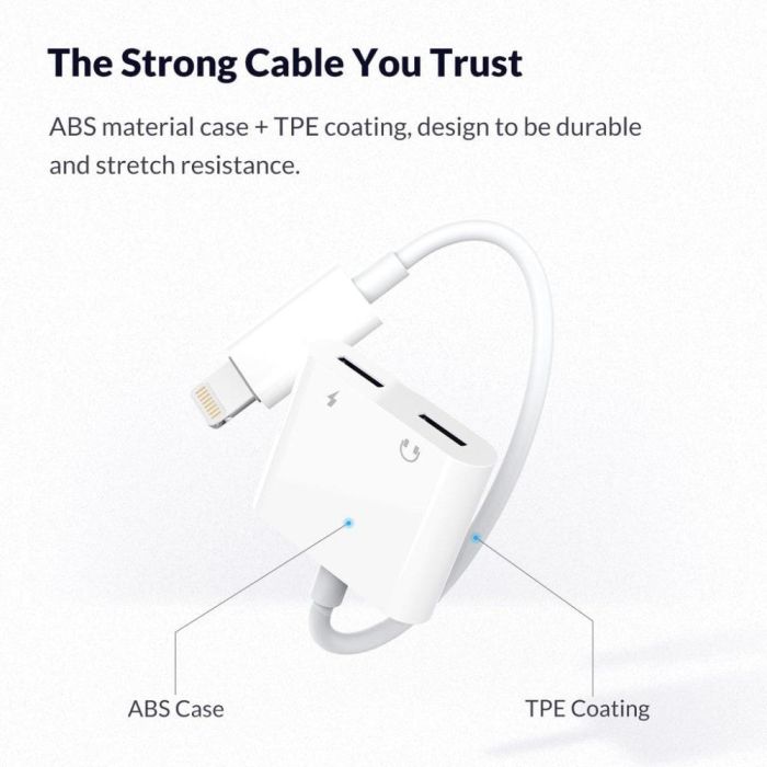 This 2-in-1 adapter lets you connect headphones while charging your phone, without sacrificing sound quality. It features a built-in decoding chip that reduces audio loss and delivers an enhanced listening experience. With its 2A charging port, you can charge your phone while listening to music or watching movies. It's easy to use, and there's no audio lag during games, calls, or live streaming.