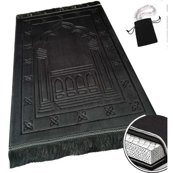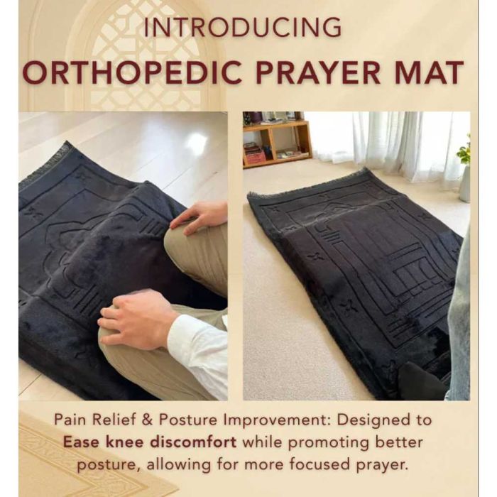 - Orthopedic Islamic Prayer Mat with Knee Support - Black