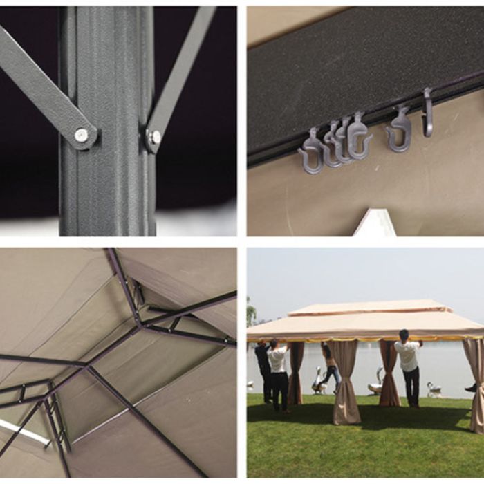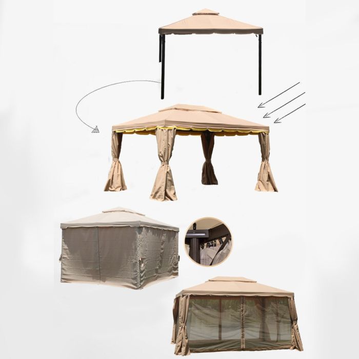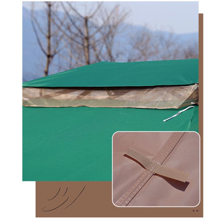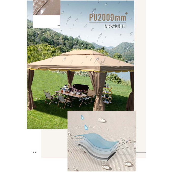This Outdoor Rainproof Tent With Curtains is made of durable fabric that offers reliable protection in various weather conditions, providing a comfortable space for gatherings and gardens, and a full-closure option for added privacy