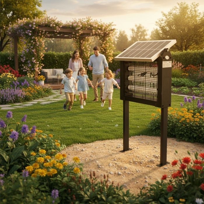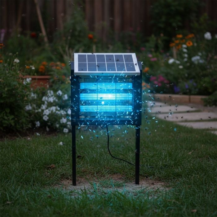 Say goodbye to annoying insects with high efficiency. provides up to 12 hours of continuous protection thanks to its powerful battery and supports a flexible dual charging system: sustainable solar or fast Type-C. It features water resistance and smart automatic operation at night. Its safe, upright design makes it the perfect solution for your outdoor space.