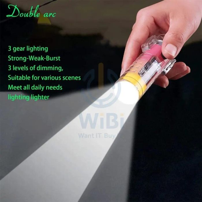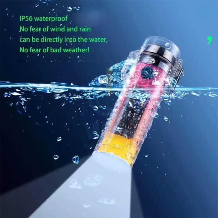 Dual plasma lighter, waterproof and USB rechargeable, with a powerful LED light for travel, camping, and windy and rainy days.