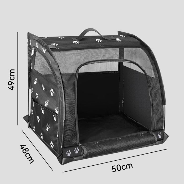 This Oxford pet travel carrier is made from durable materials, offers comfortable airflow through mesh panels, foldable and easy to carry, ideal for car use and travel while keeping your pet relaxed