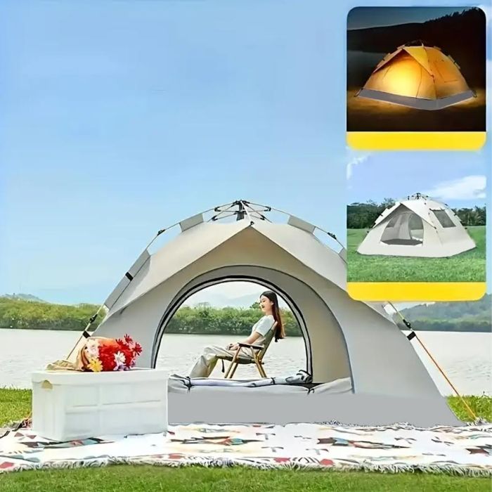 Get ready for an unforgettable camping experience with the automatic family tent. Quick-opening design that sets up effortlessly in seconds. Made from high-quality materials, it’s waterproof and sun-resistant, offering protection from all weather conditions. Thanks to its large doors and mesh cover, enjoy a comfortable atmosphere with excellent ventilation and full insect protection. Its lightweight design and compact size make it easy to carry on any adventure, making it the perfect choice for campers seeking comfort and quality in every detail