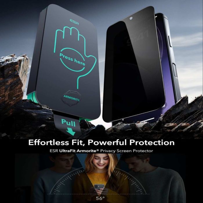 This premium privacy screen protector delivers ultra-durable Armorite strength, effortless application and advanced privacy shielding for the iPhone 17. Designed with high-grade tempered glass, it protects the screen from drops, scratches and impacts while keeping your personal content hidden from side views. The included UltraFit tray, cleaning kit and dust-repellent adhesive ensure a smooth, precise and bubble-free installation experience every time.
