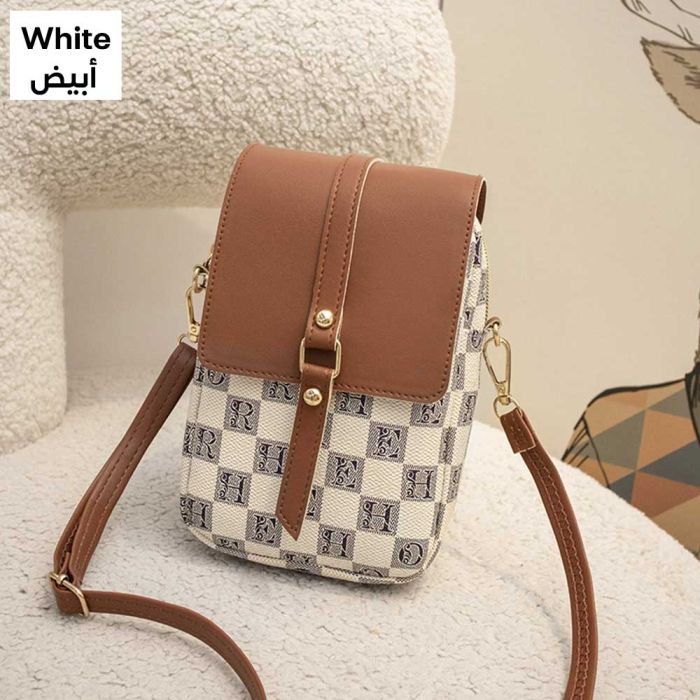 - Personalized Checkered Women's Phone Crossbody Bag 20 x 14 x 5 cm - White