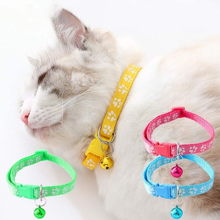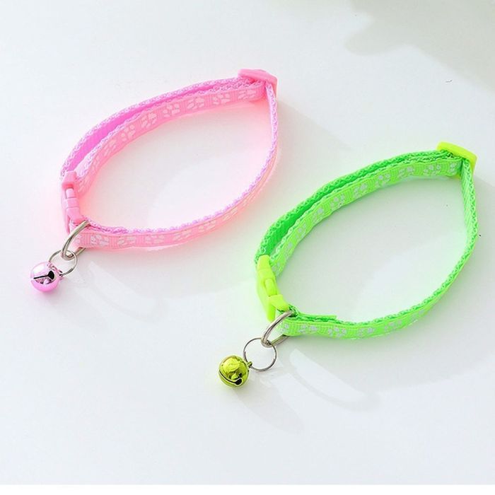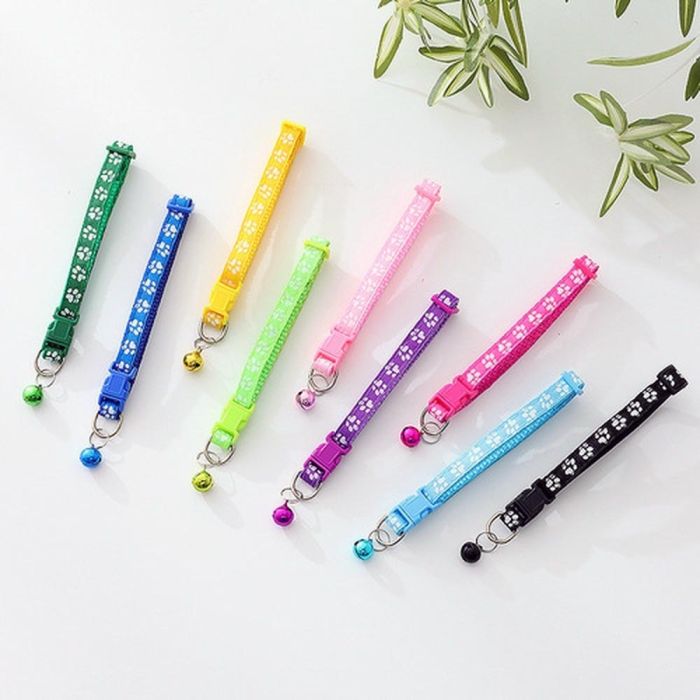 This Pet Collar with a Bell Is Made of a Soft and Comfortable Material on the Animal's Skin. This Collar Features an Attractive Design Decorated with Paw Prints and a Small Bell, Which Helps to Easily Locate the Pet. It Offers Easy Adjustment to Ensure a Perfect and Comfortable Fit Around the Neck. It Is a Stylish and Beautiful Choice for Your Pampered Friend, and Ensures Its Safety. the Quality of Its Manufacture Ensures Daily Durability and Maintains Its Quality, with the Possibility of Using It for Cats and Small Dogs Alike.