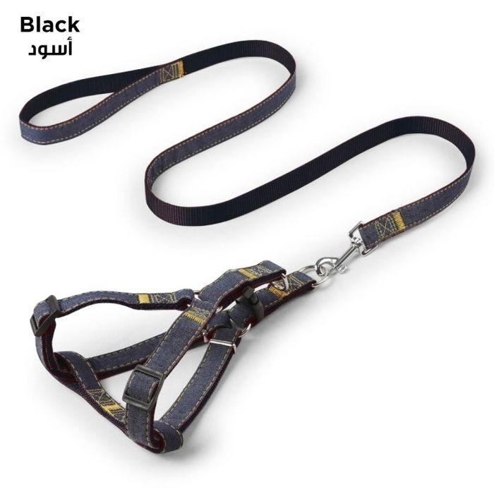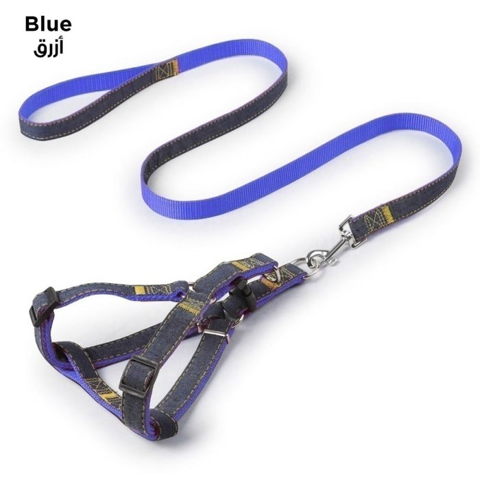 This pet harness and leash set is made of high-quality denim for exceptional durability and comfort for your furry friend. It provides a safe and enjoyable walking experience, intelligently designed to distribute pull pressure across the chest and back instead of the neck, making it ideal for long outings. The set features meticulous stitching and a stylish design that adds a touch of elegance to your pet’s appearance, ensuring secure fastening and adjustable fit for small sizes.
