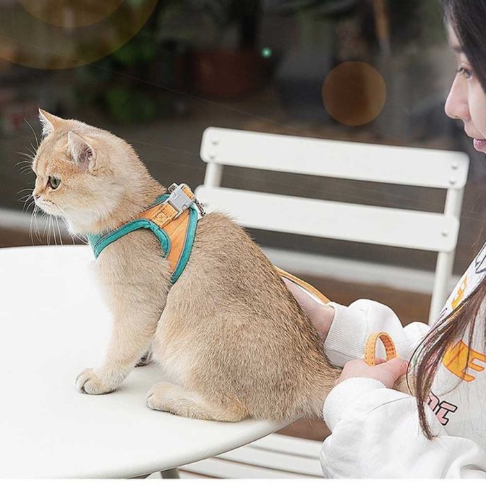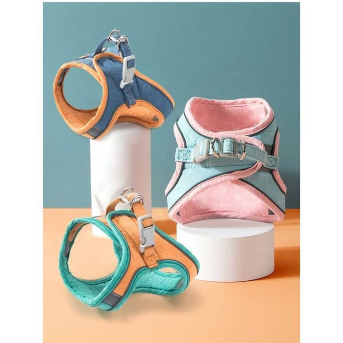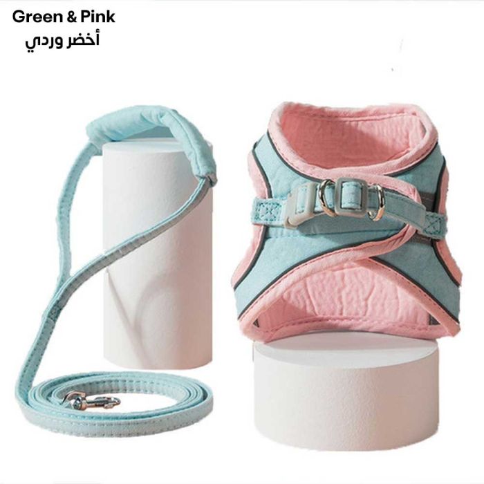 This Made from Lightweight and Comfortable Materials, This Pet Harness and Leash Features a Ergonomic Design That Gently Distributes Pressure on the Animal's Chest, Making It an Ideal Choice for Small Dogs and Cats That Need Gentle and Safe Control During Walks. the Stylish Color Combination Ensures an Attractive Appearance, and It Is Designed for All Seasons, with Easy Adjustment to Ensure a Perfect Fit. It Combines Safety and Beauty and Maintains Its Quality, Providing a Comfortable and Peaceful Walking Experience.