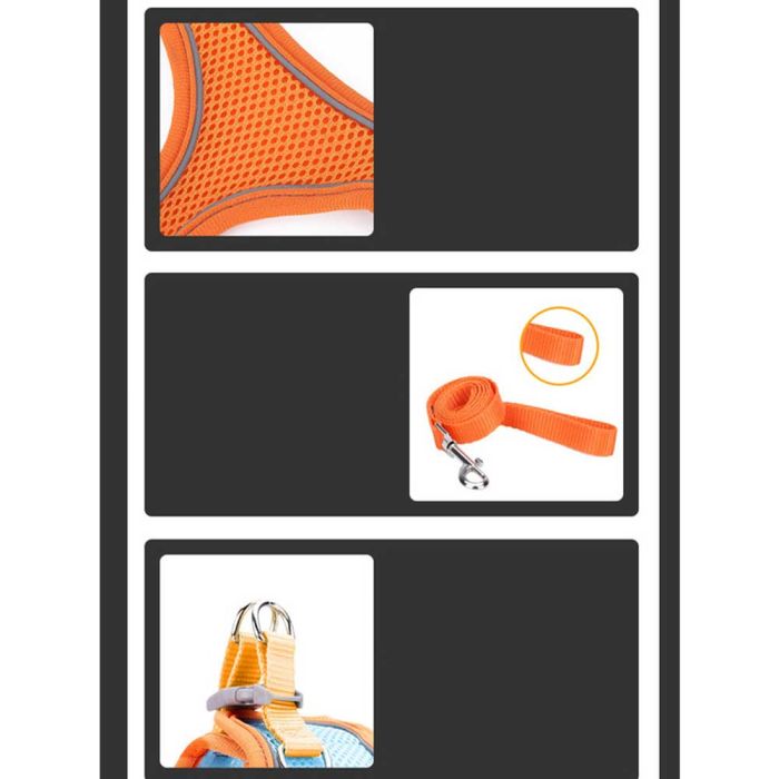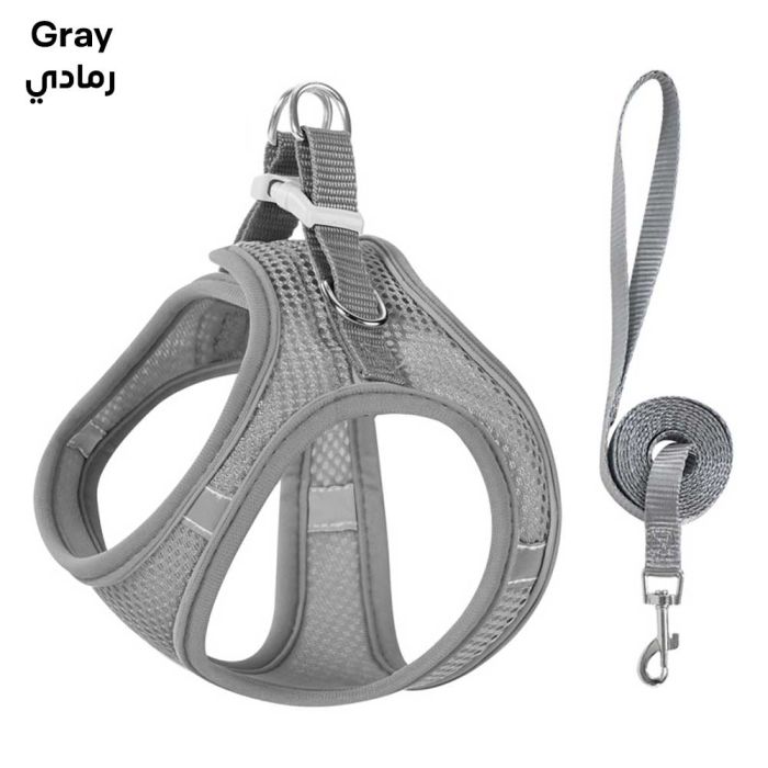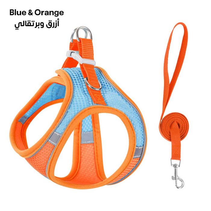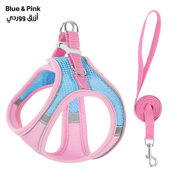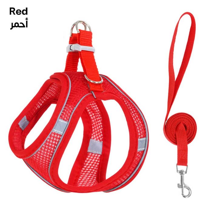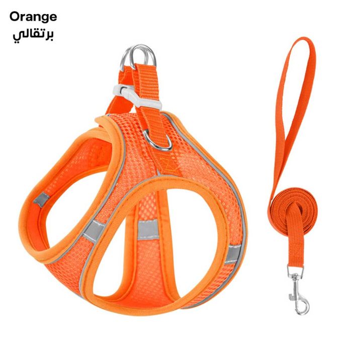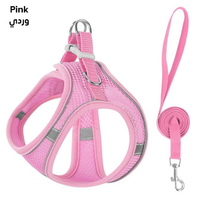 This Pet harness with reflective straps and leash, designed to provide safety and comfort during walks. Made from breathable mesh material, with reflective straps for increased visibility at night.