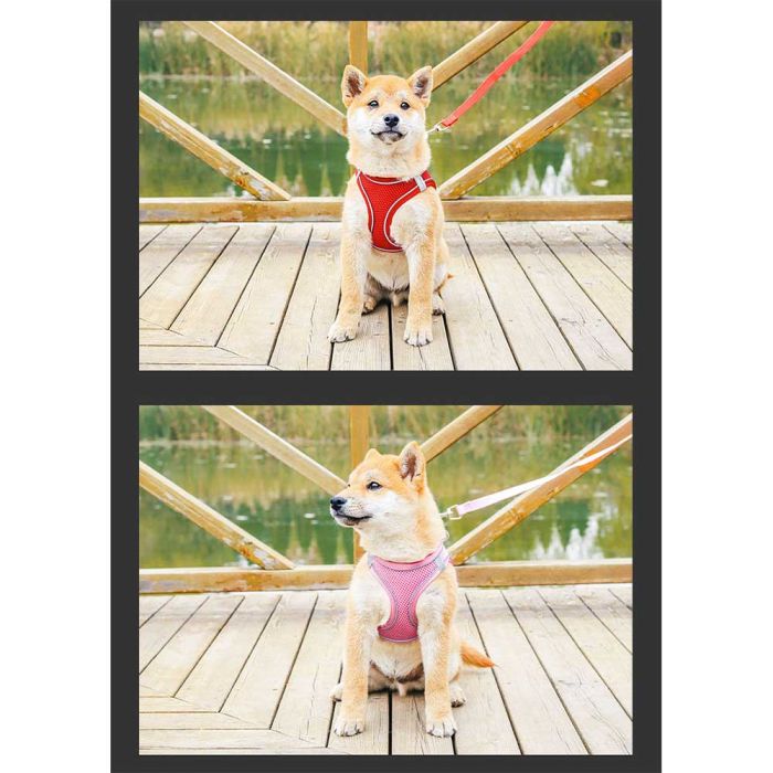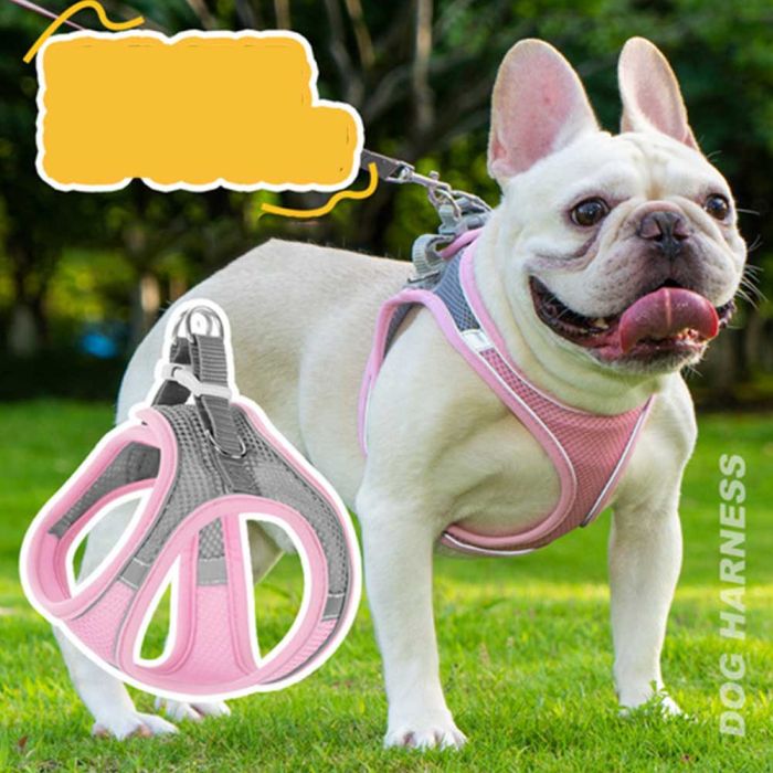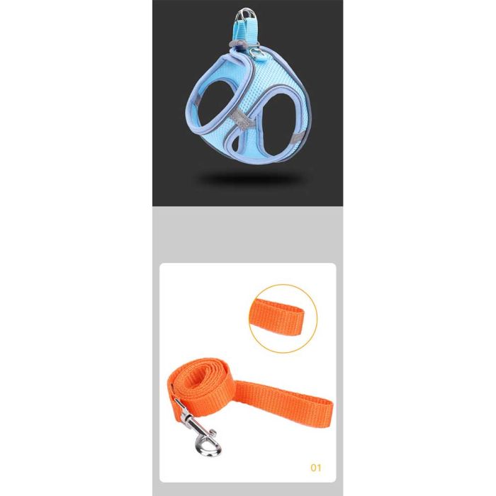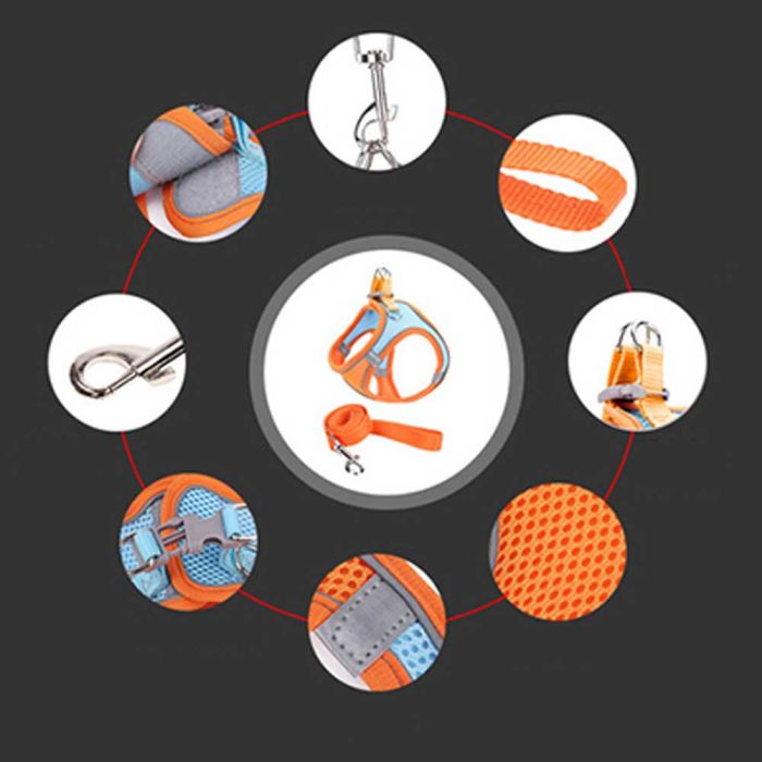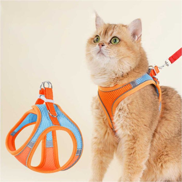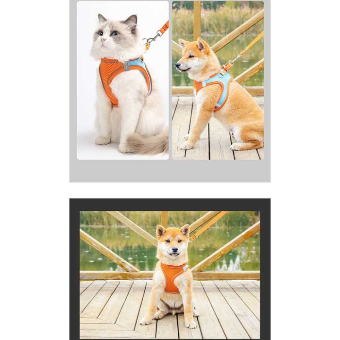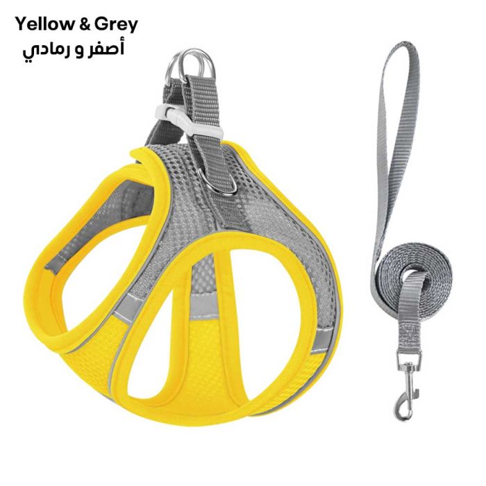 This Pet harness with reflective straps and leash, designed to provide safety and comfort during walks. Made from breathable mesh material, with reflective straps for increased visibility at night.