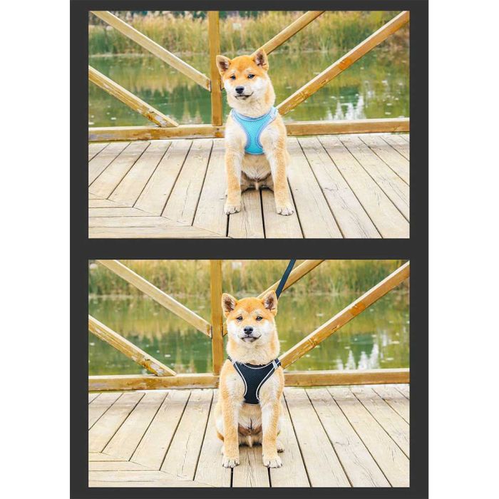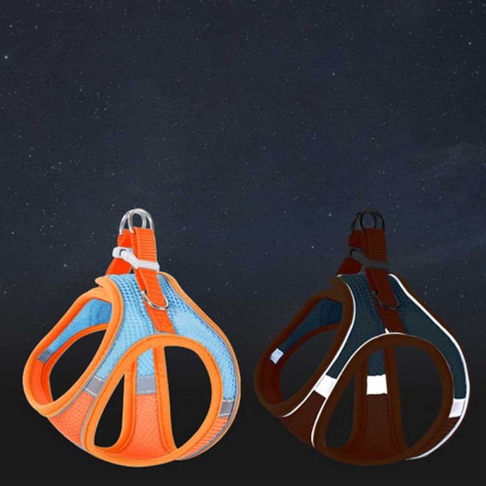 - Pet harness equipped with reflective straps to increase visibility and safety in the dark