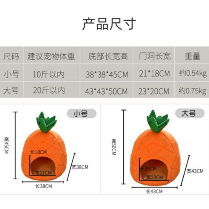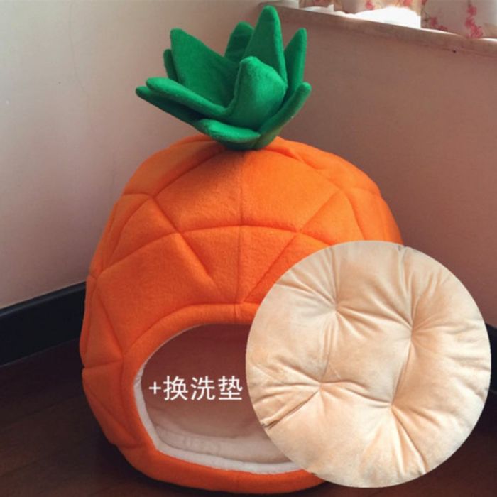 This Pineapple Design Pet House made of soft material, provides your pet with a warm and cozy space, enclosed structure enhances security, soft inner cushion for extra comfort, ideal for indoor use